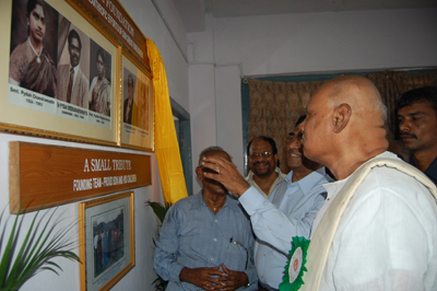 Sri Pydah Seshagiri Rao unveiling the pictures of immediate ancestors in whose memory the Foundation is established |