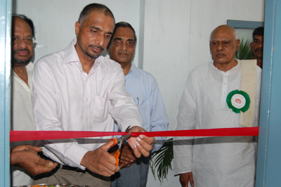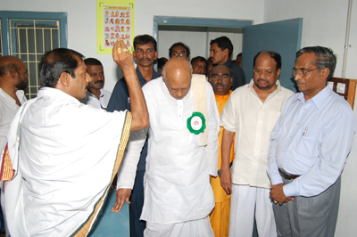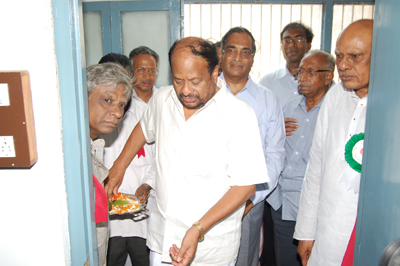 Rosaiah garu cutting the ribbon for theFoundation’s premises. Sri M.Gopalakrishna, M.L.A. is to his right.. |