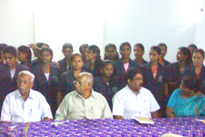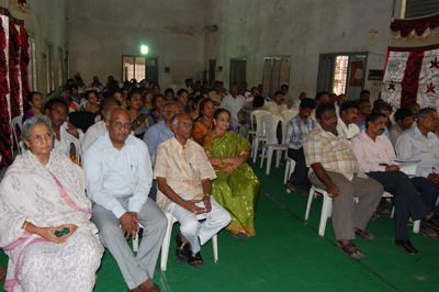 Welcoming the Chief Guest, Sri K. Rosaiah, Hon’ble Minister for Finance, Govt. of A.P. L to R Chandramati Devi, Sreeram, Padma, Sri Rosaiah, Venkatanarayana & Venkateswara Rao |