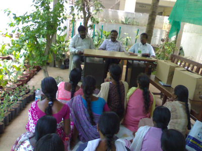 Sri Srinivasula (left), Asst. Dir., Horticulture, Kakinada addressing the first batch of Gardening trainees. |