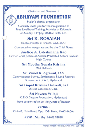 Rosaiah giving his advice and wishing the Foudation every success. |