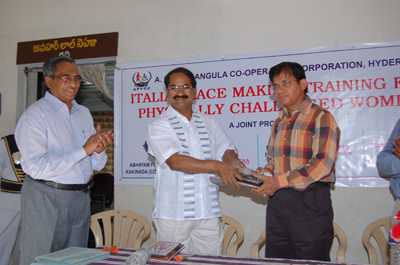 Concluding Program of Italian Lace Making Project. Chief Guest, Sri Goplalakrishna Dwivedi, I.A.S., District Collector and Guest of Honour, Sri Amruthiah, Mg. Dir., A.P. Vikalangula Corpn. |